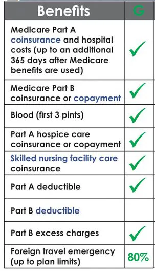 Plan G covers the following at 100% after you meet the Once a year Part B Deductible with the exception of the foreign travel emergency benefit: